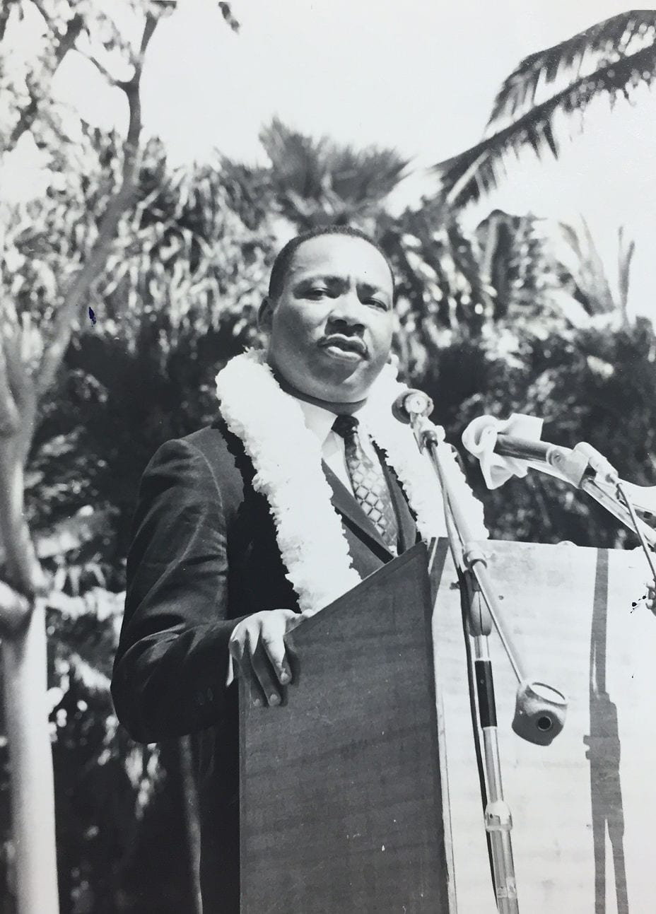 Rev. Abraham Akaka, then the chairman of the Hawaii Advisory Committee of the U.S. Civil Rights Commission was at the event and met King and developed a strong friendship.